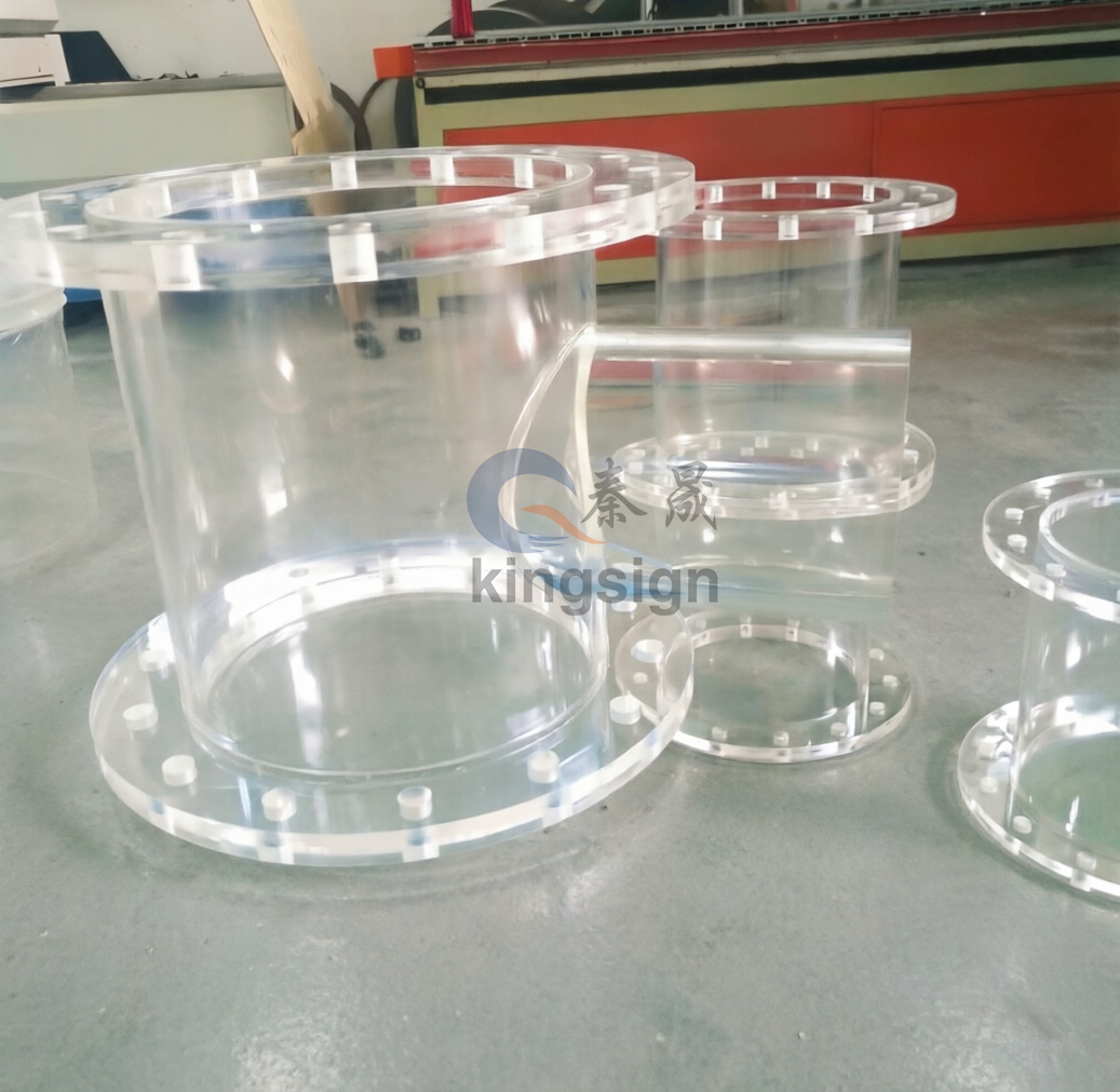 పారదర్శకత మరియు విశ్వసనీయత అవసరమయ్యే పైలట్ ప్లాంట్ సిస్టమ్స్, ఎడ్యుకేషనల్ రీసెర్చ్ సెటప్లు, ఎన్విరాన్మెంటల్ మానిటరింగ్ ఎక్విప్మెంట్ మరియు అల్ప పీడన ద్రవ పంపిణీ వ్యవస్థలలో ఈ ఫ్లాంగ్డ్ యాక్రిలిక్ పైపులు విస్తృతంగా ఉపయోగించబడుతున్నాయి. మీకు స్టాండర్డ్ సైజ్ లేదా పూర్తిగా కస్టమ్ సొల్యూషన్ కావాలన్నా, కింగ్సైన్ మీ కార్యకలాపాలలో స్థిరమైన పనితీరు కోసం టైట్ టాలరెన్స్తో తయారు చేయబడిన యాక్రిలిక్ ఫ్లాంజ్ కాంపోనెంట్లను అందిస్తుంది.